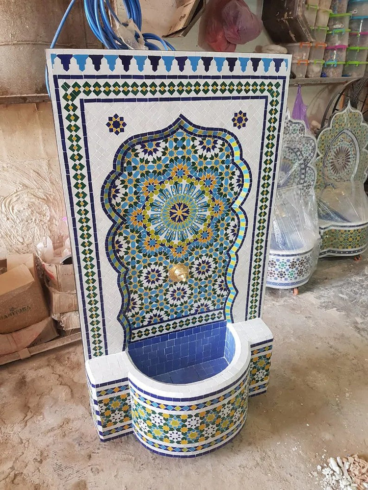Handcrafted Moroccan Fountain - Authentic Zellige Mosaic Tile