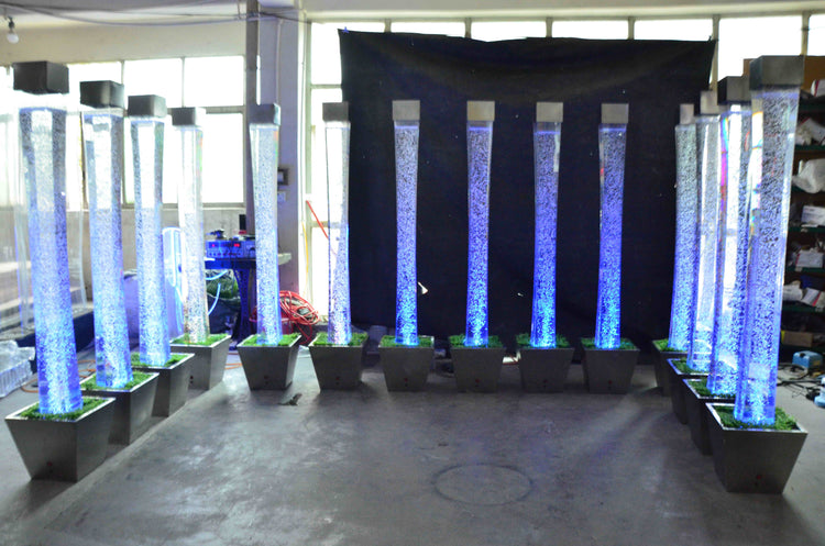 Santa Barbara is a contemporary floor standing Square Pillar Shaped Bubble Wall with remote control & changing water & lights settings.