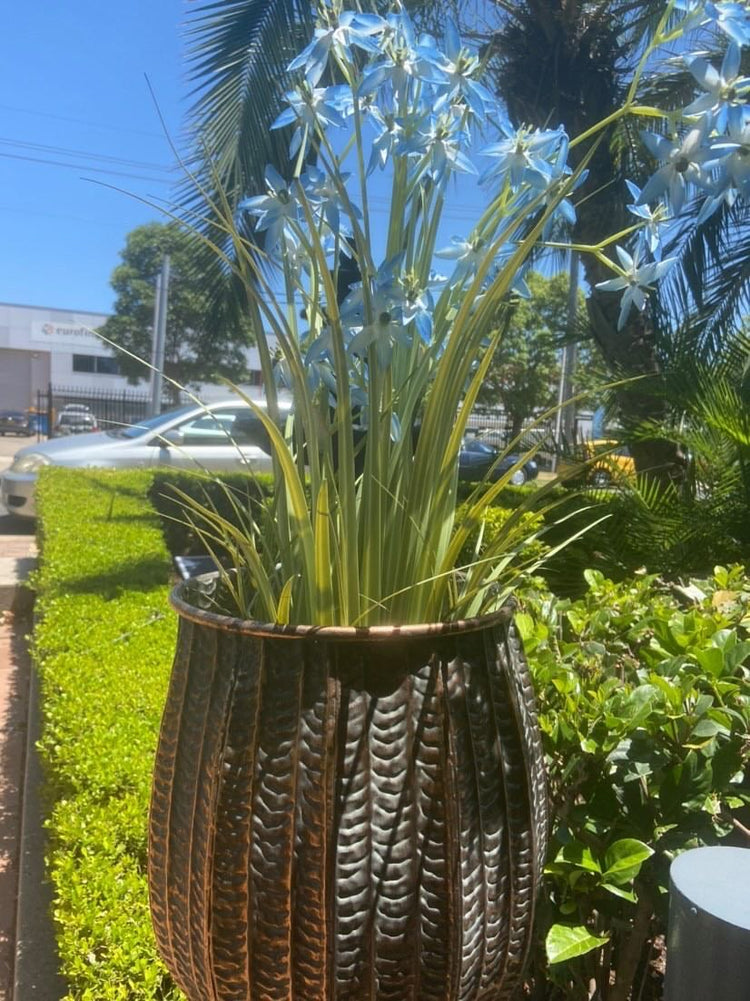 Sensational Premium Metal Planter in Andalusian vivid design and textured surface.