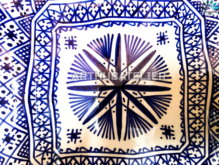 Blue Ceramic Dinnerware sets plats 1 to 8 plat 100% handmade, Ceramic Serving Plate and for Decorative Wall Hanging