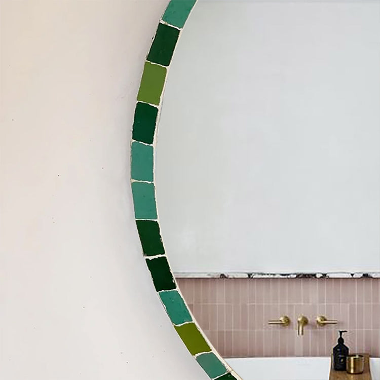 CUSTOMIZABLE Zellige Tiles Mirror, Emeraled Green 30mm Tiles - Natural 3 Shades Of Green Zellige Mosaic Tiles - Round Bathroom Wall Mirror