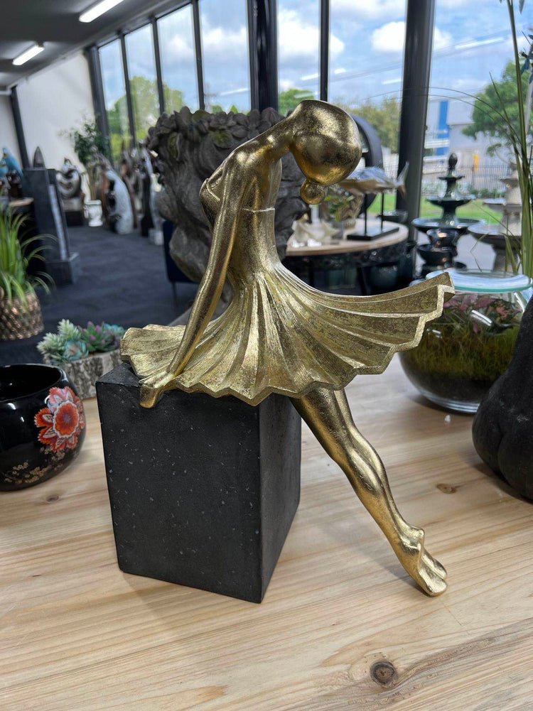 Dimensions: 31*19*40.5 cm H colour Gold with Black Stand.