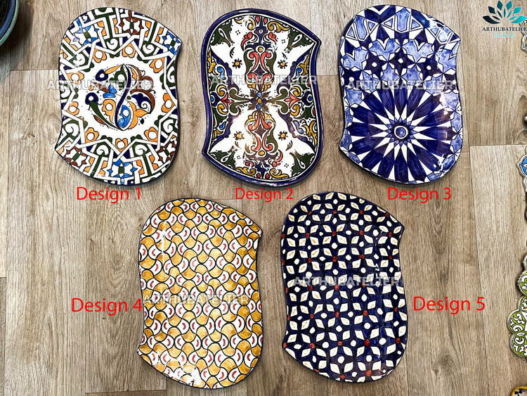 Ceramic Plate blue for serving and for Decorative Wall Hanging 100% handmade and hand painted 16"X11", Dinnerware sets plats