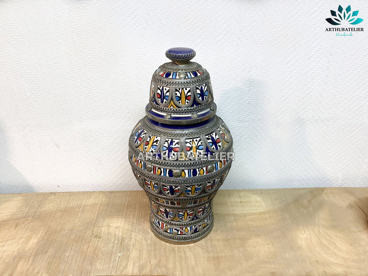 COSTUMIZABLE Pottery Jar, Ceramic adorned metal jar 100% handcrafted, Luxury jar, Ceramic art multicolor