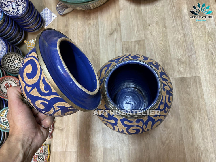 COSTUMIZABLE Pottery Jar, Ceramic engraved and adorned metal jar 100% handcrafted, Luxury jar, Ceramic art multicolor