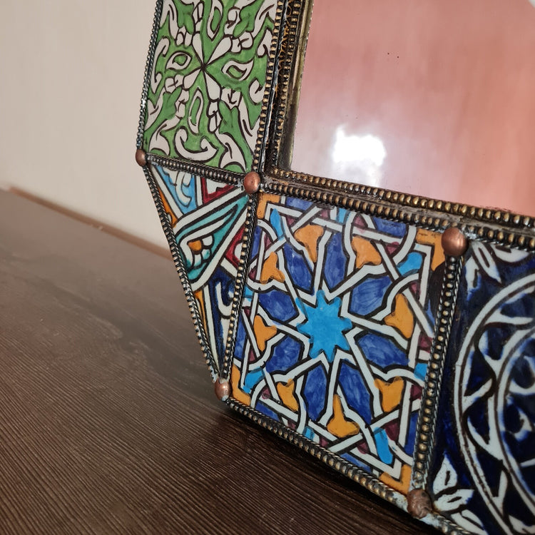 Ceramic Tiled Mirror Brass Frame with Ethnic Ti...
