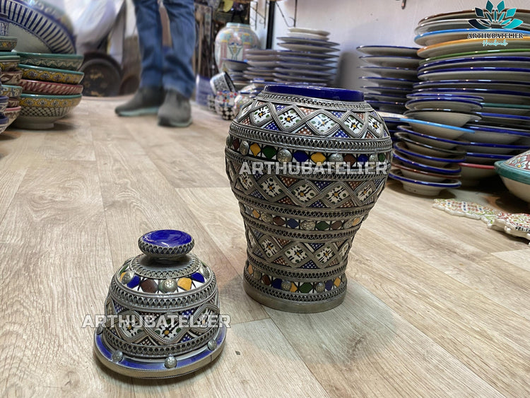 COSTUMIZABLE Pottery Jar, Ceramic adorned metal jar 100% handcrafted, Luxury jar, Ceramic art multicolor
