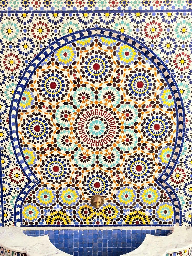 Moving to Zellige, when it bakes for the first time, and the second time with the paint it is given to Nekkach that decides what kind of pattern will be used on it depends on where Zellige will be put. He spreads them flipped in a geometrical pattern based on ancient references such as Karaouiyn, and the king's palaces...