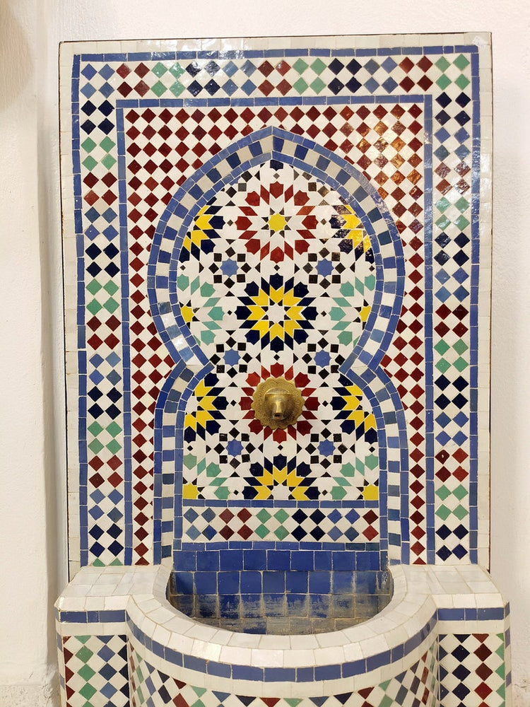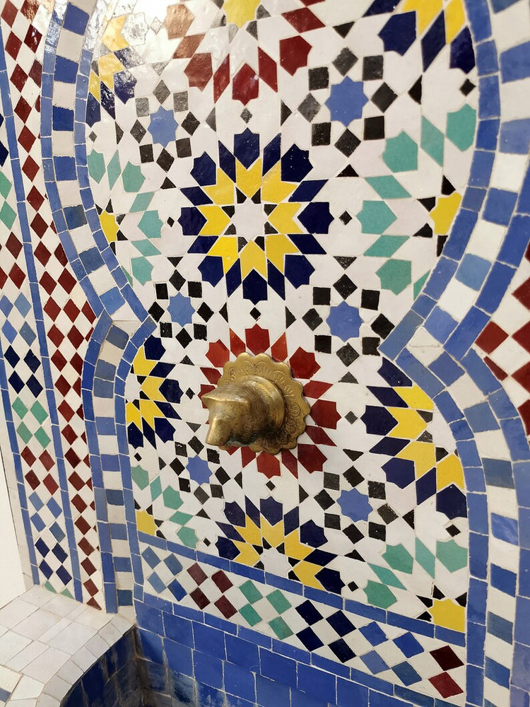 Moving to Zellige, when it bakes for the first time, and the second time with the paint it is given to Nekkach that decides what kind of pattern will be used on it depends on where Zellige will be put. He spreads them flipped in a geometrical pattern based on ancient references such as Karaouiyn, and the king's palaces...
