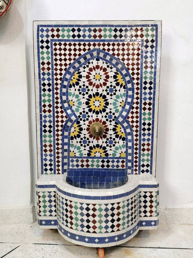 this amazing traditional Fountain was handcrafted by A professional worker, it represents the cultural diversity of Moroccan handcrafts and that is because of its design, material and the colors used at the surface of the table, the height of this amazing piece of art is 55 cm with a width of 40 cm and a possibility of personal customization. by obtaining such objects you would be helping a dying craft to flourish again so that contact between the past and the present would never die not mentioning the happiness it would bring to poor workers on fields like this .