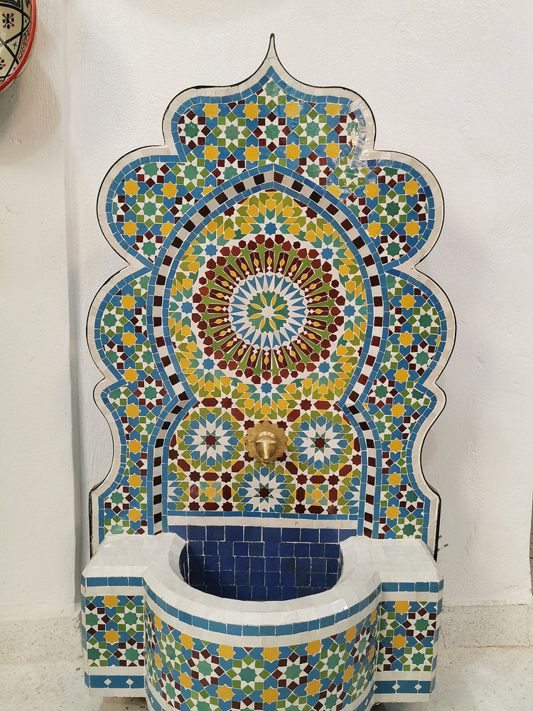this amazing traditional Fountain was handcrafted by A professional worker, it represents the cultural diversity of Moroccan handcrafts and that is because of its design, material and the colors used at the surface of the table, the height of this amazing piece of art is 55 cm with a width of 40 cm and a possibility of personal customization. by obtaining such objects you would be helping a dying craft to flourish again so that contact between the past and the present would never die not mentioning the happiness it would bring to poor workers on fields like this .