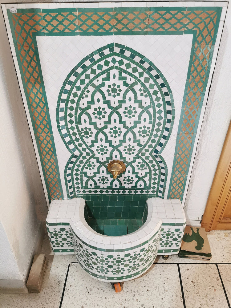 this amazing traditional Fountain was handcrafted by A professional worker, it represents the cultural diversity of Moroccan handcrafts and that is because of its design, material and the colors used at the surface of the table, the height of this amazing piece of art is 55 cm with a width of 40 cm and a possibility of personal customization. by obtaining such objects you would be helping a dying craft to flourish again so that contact between the past and the present would never die not mentioning the happiness it would bring to poor workers on fields like this .