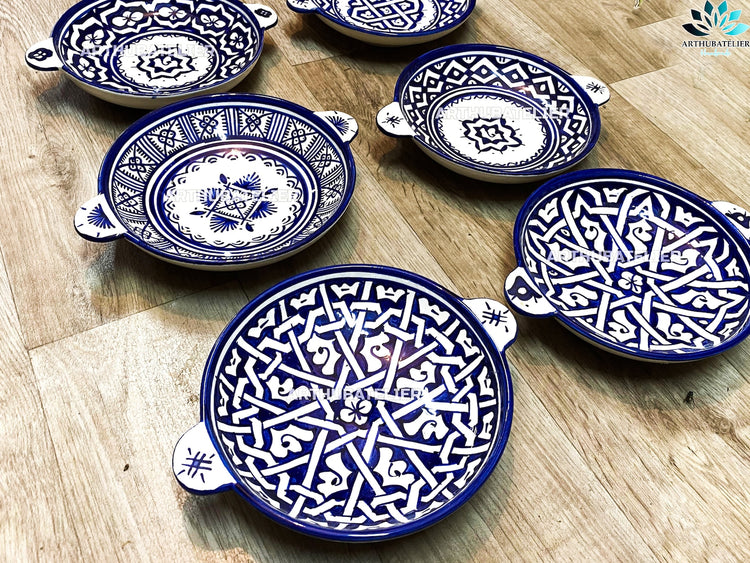 Tagine for serving blue plat 100 % handmade ceramic tajine for your kitchen, hand painted plat