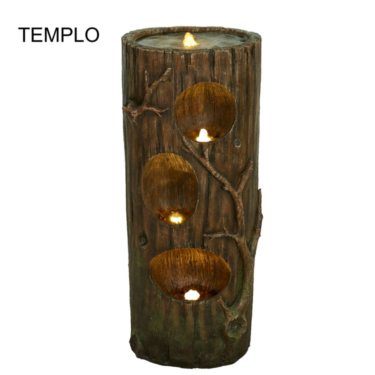 Temple natural tree trunk fountain with LED Lights – H101cm